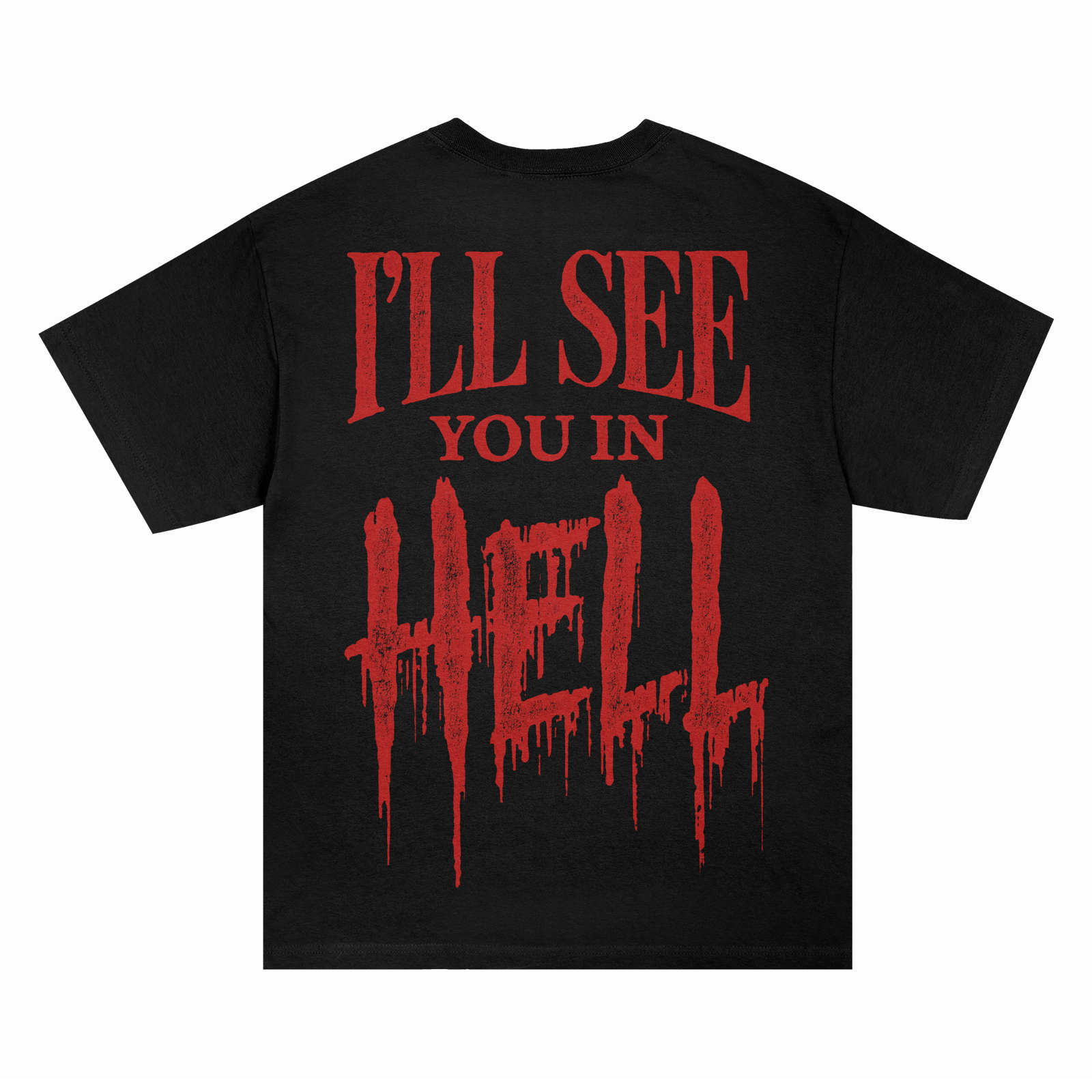 The Motionless In White I’ll See You In Hell design, printed on a black t-shirt.